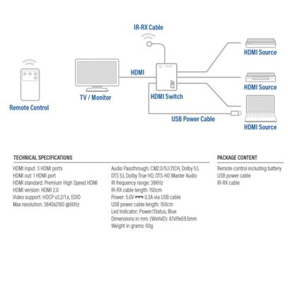 ACT 3 poorts 4K HDMI switch
