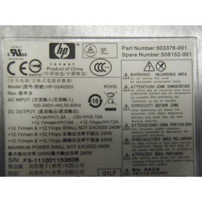 Onderdeelnummer : 503375-001, 503376-001, 508151-001, 508152-001, HP-D2402E0, PS-4241-9HA, DPS-240TB A , 611481-001, 613762-001, D2402A0, DPS-240RB, PC8019, PS-4241-9, HPPC9058, CFH0240EWWB, 611482-001, 613763-001 , 659193-001, 659246-001, PC9055, 611479-001, 613663-001