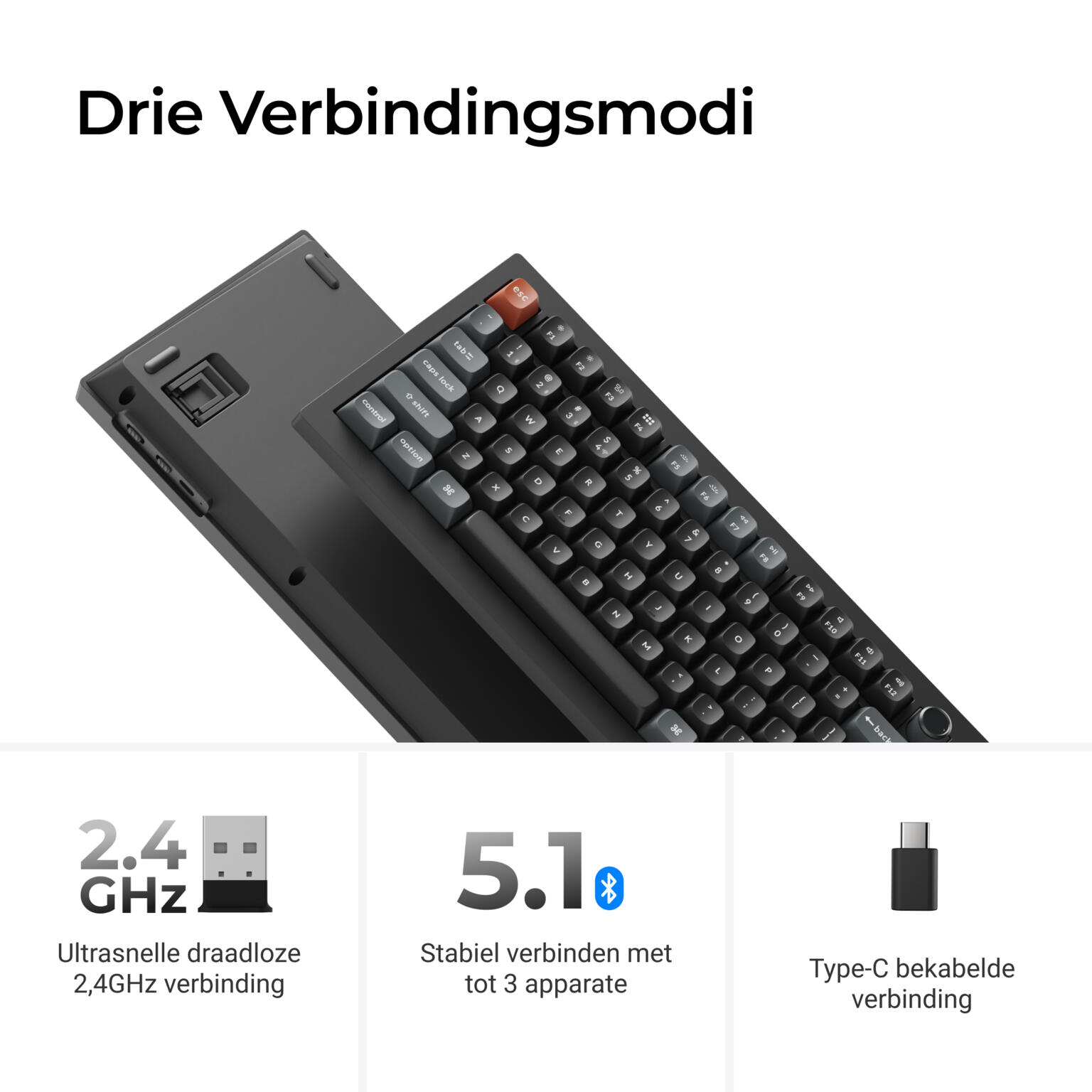 Keychron Q1 Ultra 8K toetsenbord Silk POM brown switch zwart