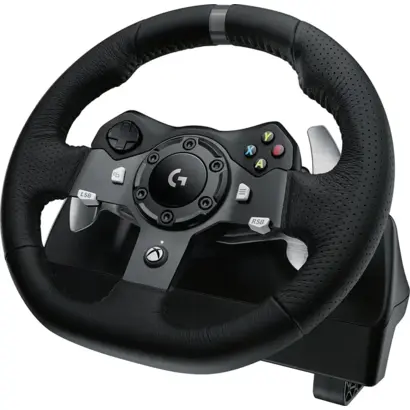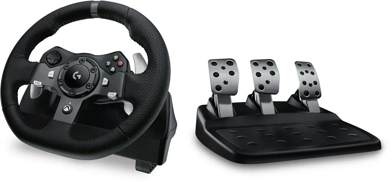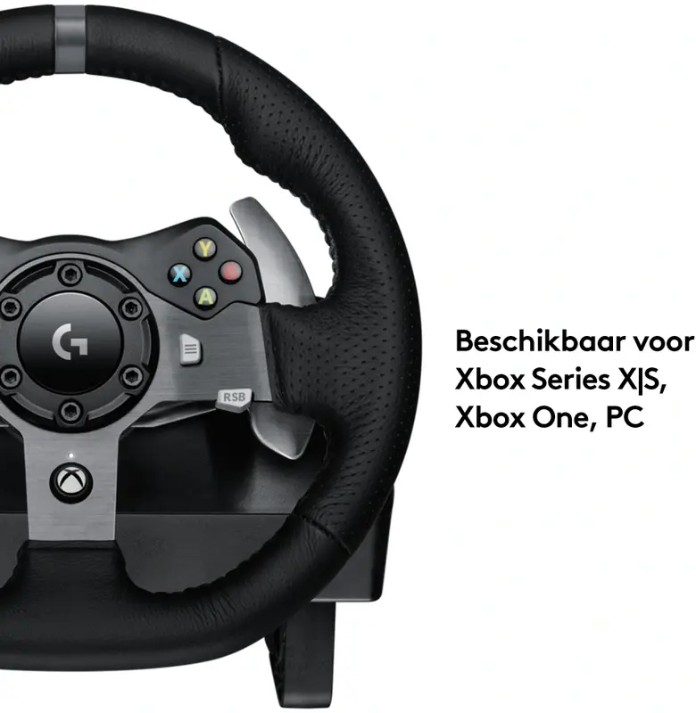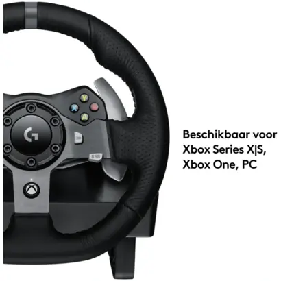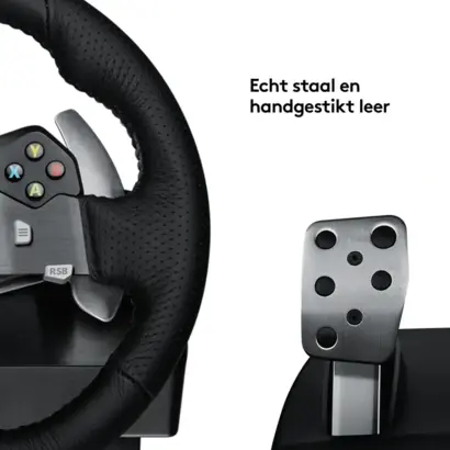 Logitech® G920 Driving Force is het ultieme simulatieracestuur voor de nieuwste Xbox One™- en pc-titels, met realistische forcefeedback via twee motoren en helische tandwielen voor stille, vloeiende besturing. Knoppen en versnellingsregelaars op het stuurwiel bevinden zich binnen handbereik zodat je nauwkeurig kunt schakelen. De afzonderlijke pedaleneenheid biedt je natuurlijke, responsieve besturing met een niet-lineair rempedaal, waarmee het gevoel van rijden in een highperformance auto wordt nagebootst. Driving Force is gemaakt voor comfort en duurzaamheid met handgestikt leer en roestvrijstalen componenten. Dankzij ingebouwde klemmetjes en bevestigingspunten kan het stuurwiel stevig aan een tafel of raceconsole worden bevestigd om verschuiven of wankelen tijdens agressieve manoeuvres te minimaliseren.