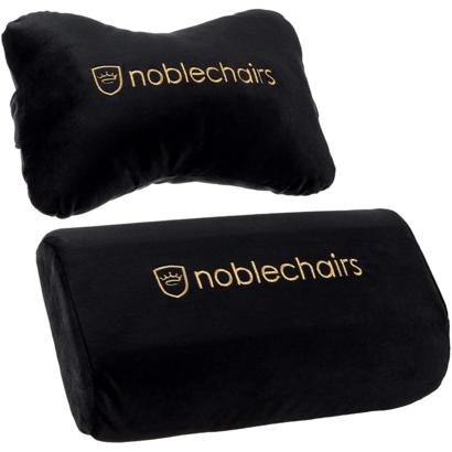 Premium kussenset voor noblechairs EPIC, ICON & HERO, biedt nek- en lendensteun, verbeterde ergonomie en comfort, inclusief gestikt noblechairs-logo.