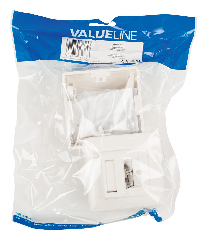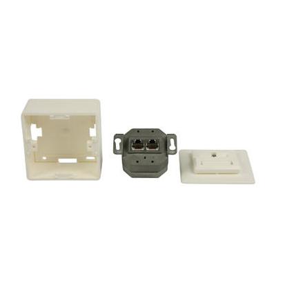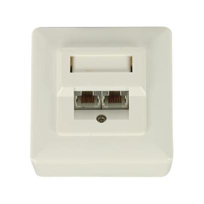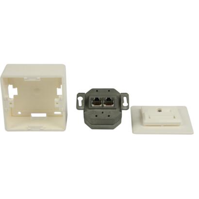 Deze RJ45-muurplaat met 2 RJ45-netwerkverbindingen kan op een oppervlak of op een spoel worden gemonteerd. De muurplaat is geschikt voor CAT 5- en CAT 6-kabels.