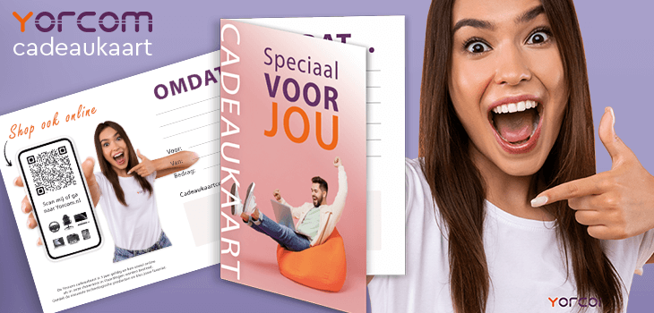 Verras iemand met de Yorcom Cadeaukaart, het ideale cadeau voor elke gelegenheid. Kies voor een digitale kaart die direct online kan worden gebruikt of haal een fysieke kaart op in onze showroom. De cadeaukaart is geldig voor ons volledige assortiment en kan gecombineerd worden met aanbiedingen en kortingsacties. Zo geef je altijd een cadeau dat echt goed van pas komt en waar iedereen blij van wordt.